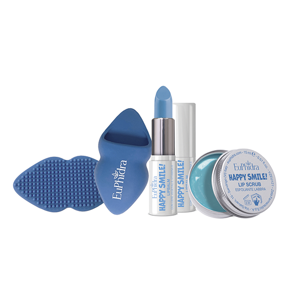 Happy Smile lip scrub. Happy Smile lip brush. Happy Smile balsamo nutriente.